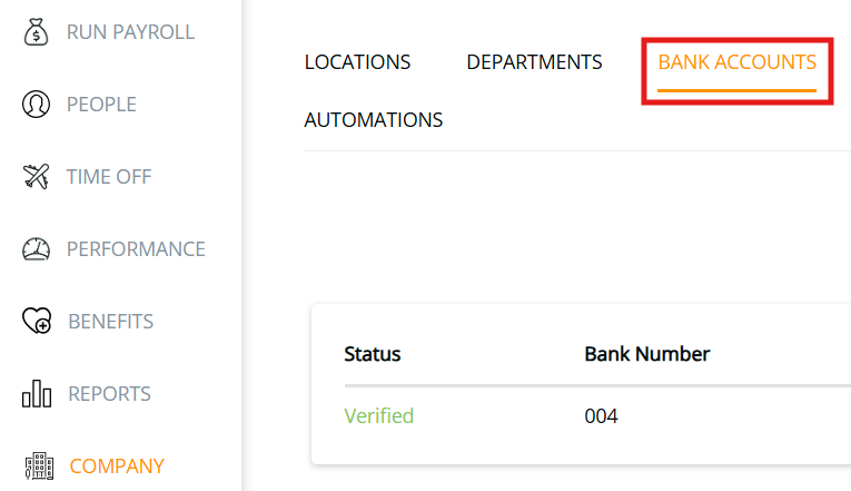 To add a new bank account, please click on the Company Tab. Next, select Bank Accounts.