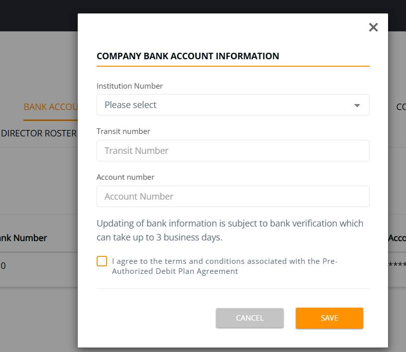 IMPORTANT: Updating the banking information is subject to bank verification, which can take up to three business days to process.